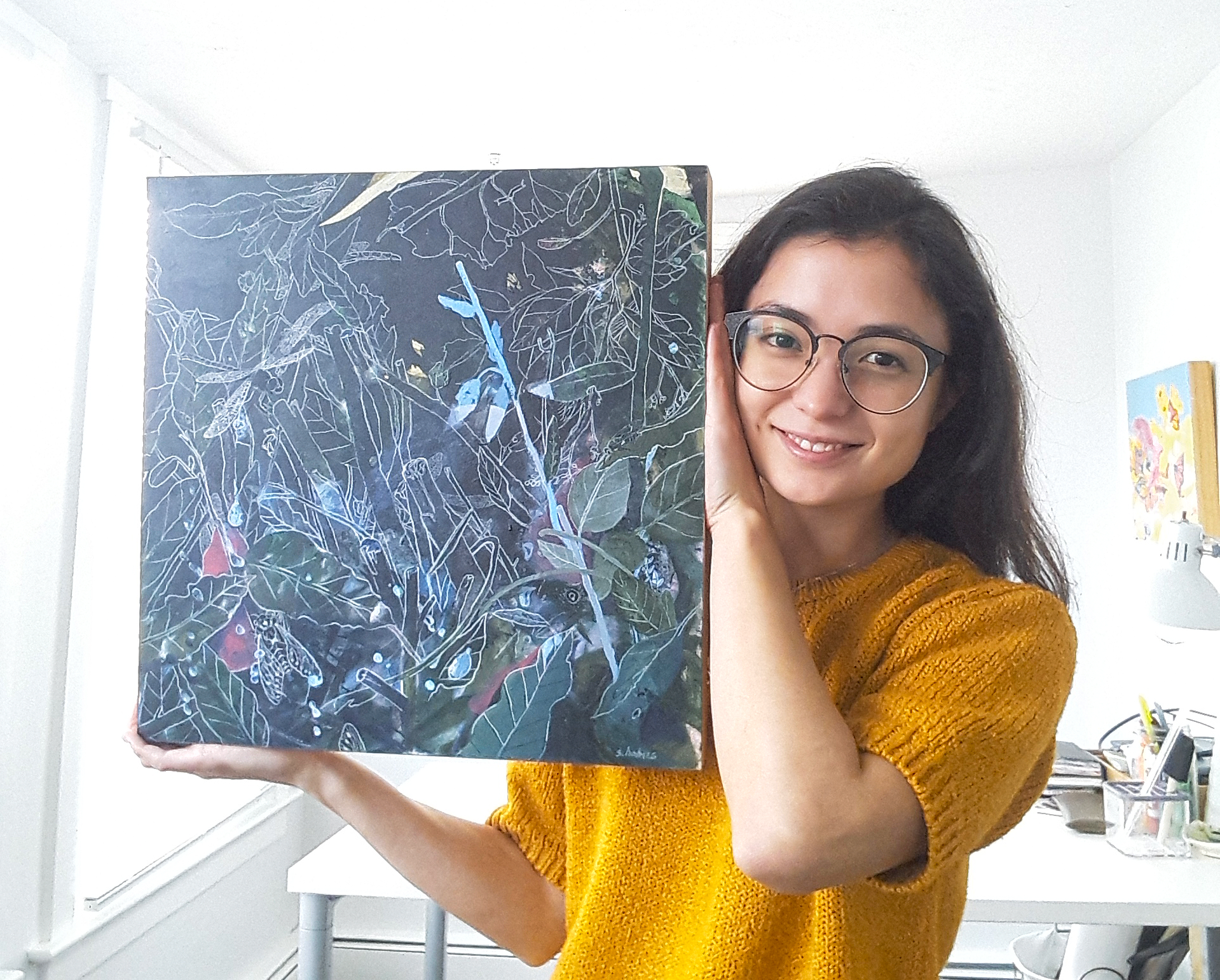 Acrylic painter Steph Holmes' works often immediately greet us with scenes of nature in her own unique voice. The Millersville University graduate earned a Bachelor of Fine Arts in ceramics and drawing.